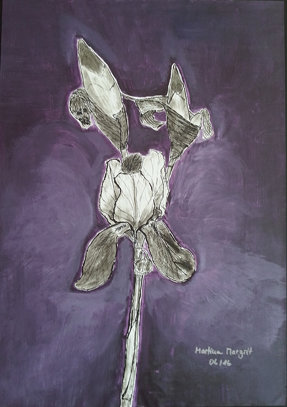 Zeichnung <LIEBE_IRIS> © Martina Margrit Bleistift, Tusche laviert, Acryl Format: 30 x 40 cm Nummer: 201605-LIIR